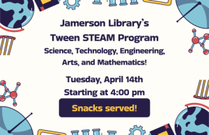 On Tuesday, April 14 the Library hosted their monthly Tween STE(A)M program where they enjoyed new simple science projects. Young scientists rolled up their sleeves and dove into the slimy, stretchy, colorful world of chemistry experiments. It was equal parts learning and laughing — exactly what a great STE(A)M program looks like!