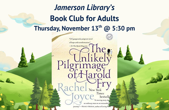Jamerson Library’s Book Club for Adults will meet in the Library’s community room at 5:30 pm. This month’s book is “The Unlikely Pilgrimage of Harold Fry” by Rachel Joyce. Meet Harold Fry, recently retired. He lives in a small English village with his wife, Maureen, who seems irritated by almost everything he does, even down to how he butters his toast. Little differentiates one day from the next. Then one morning the mail arrives, and within the stack of quotidian minutiae is a letter addressed to Harold in a shaky scrawl from a woman he hasn’t seen or heard from in twenty years. Patrons 18+ years of age can find out more by picking up a copy and joining us for the Jamerson Library’s Book Club for Adults.