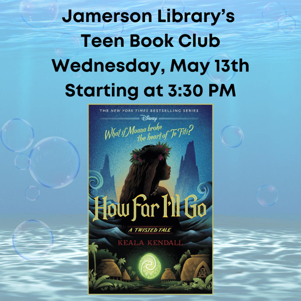 Jamerson Library’s Teen Book Club starting at 3:30 pm. This month’s book is “How Far I’ll Go: A Twisted Tale” by Keata Kendall. After a devastating battle with Te Kā, Moana’s worst fears are realized: the heart of Te Fiti is in ruins, Maui is frozen in volcanic rock, and darkness threatens to envelop her beloved home. Desperate to fix things, Moana stumbles upon an island already crumbling under the blight. All life is gone, save one sole survivor—a young woman named Noe. There are multiple copies available at the circulation desk.