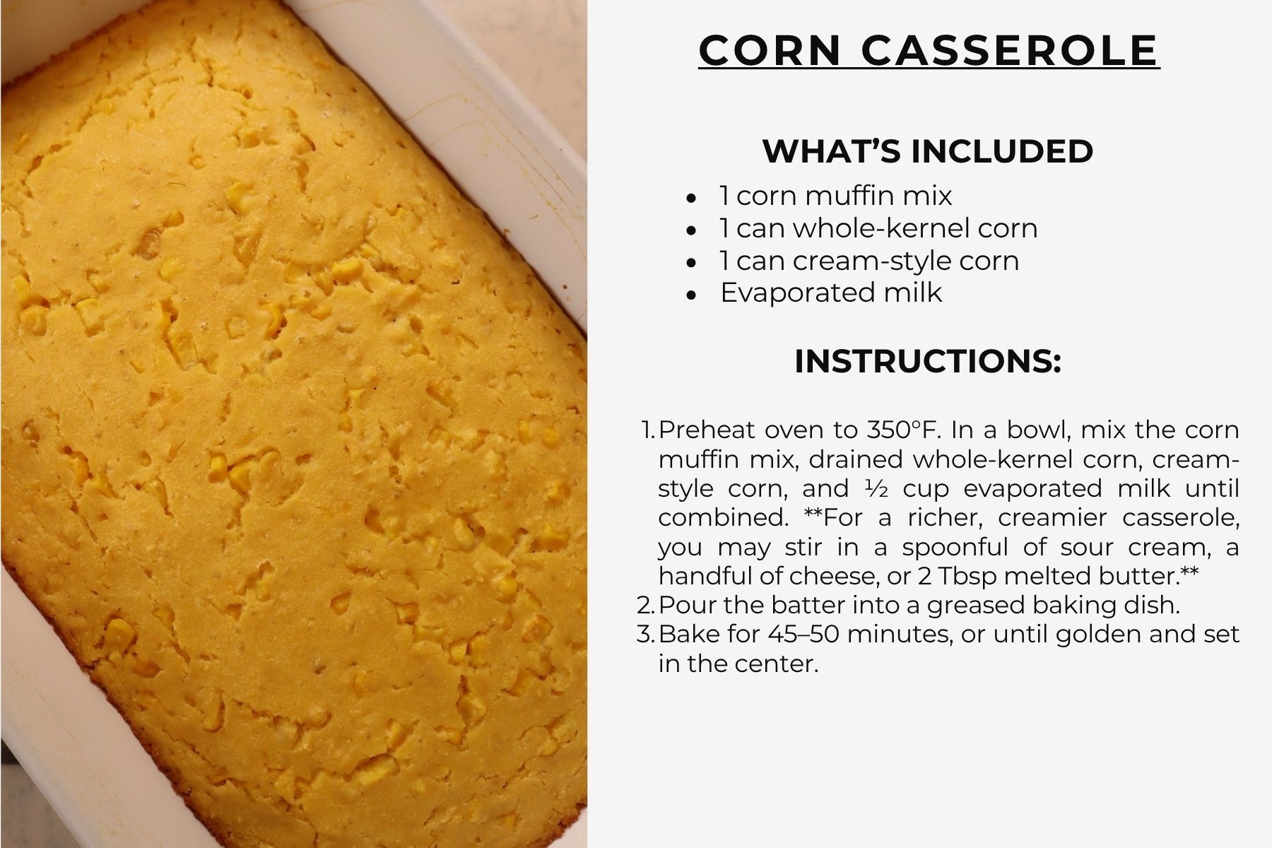 For a list of suggested items and sample recipes, please visit our website to view the Meal in a Bag recipe cards. Your participation and generosity will make a meaningful difference in the lives of our neighbors this season.